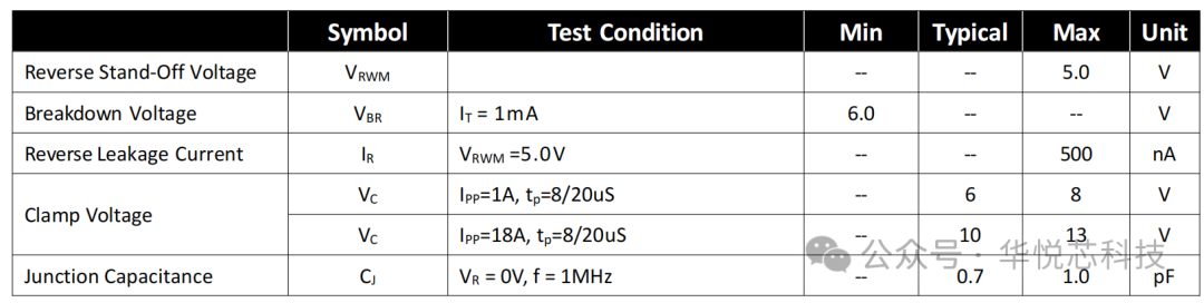 最终实现的典型特征为:标准SOD-323封装,完全PIN TO PIN替代原始防护,VRWM 5V CJ 0.8pF,10V@IPP 18A